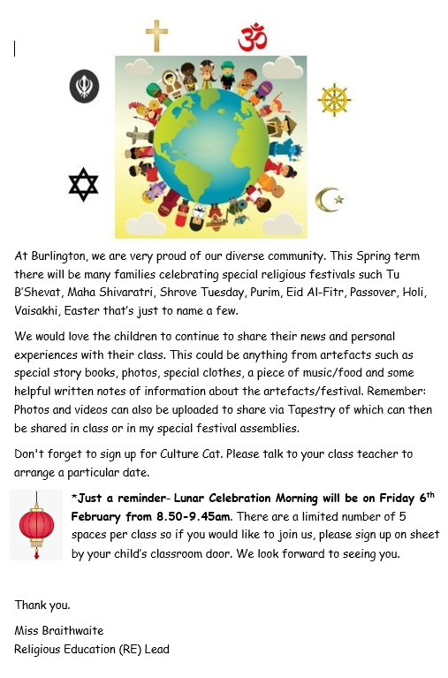 • Religious Education in Spring term
