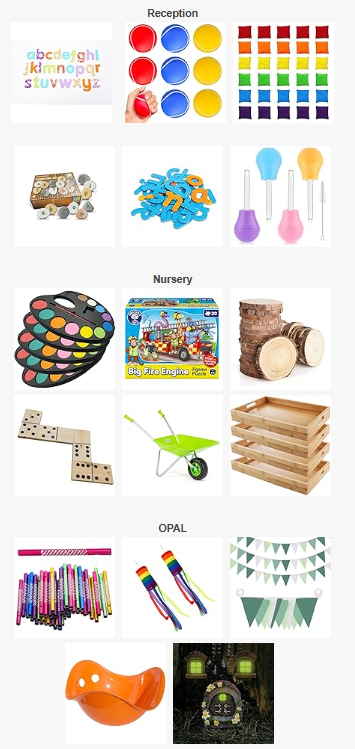 We have just added lots of new items to our wishlist. Items are priced from as little as £4 so if you are able to help us we would really appreciate it! We have now added the areas where the resources will be going such as Opal, Nursery etc should you wish to donate towards a specific area of the school.